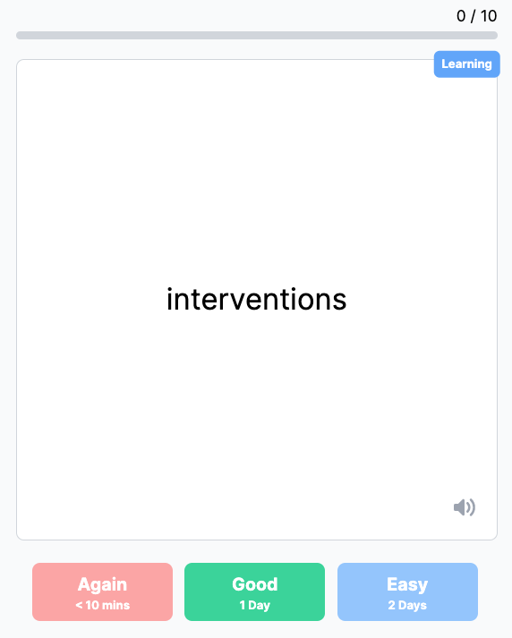 Powered by a spaced-repetition algorithm to make your learning as efficient as possible.